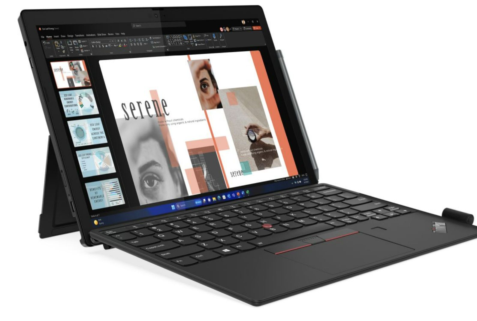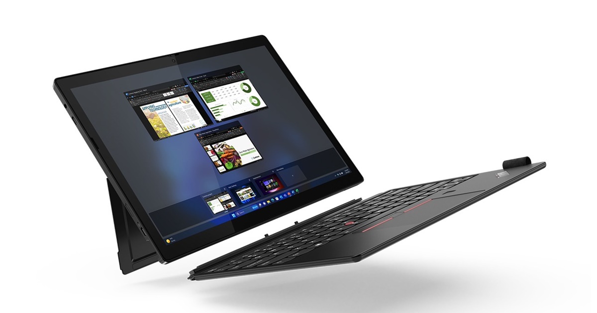 Laptopul are tastatura retroiluminata, trackpad despărţit şi un TrackPoint roşu, că pe vremuri, cu rol de mouse. Tableta dispune de un ecran de 12.3 inch IPS LCD cu aspect 3:2, cu protecţie Gorilla Glass, o cameră frontală de 5 megapixeli, cu suport pentru infraroşu, ,pentru recunoaştere facială. Suportă până la 32 GB RAM LPDDR5x dual channel, dar şi până la 1 GB stocare PCIe Gen 4x4 de tip SSD. Are două speakere, două microfoane, Dolby Audio, camera principală de 8 MP în spate.