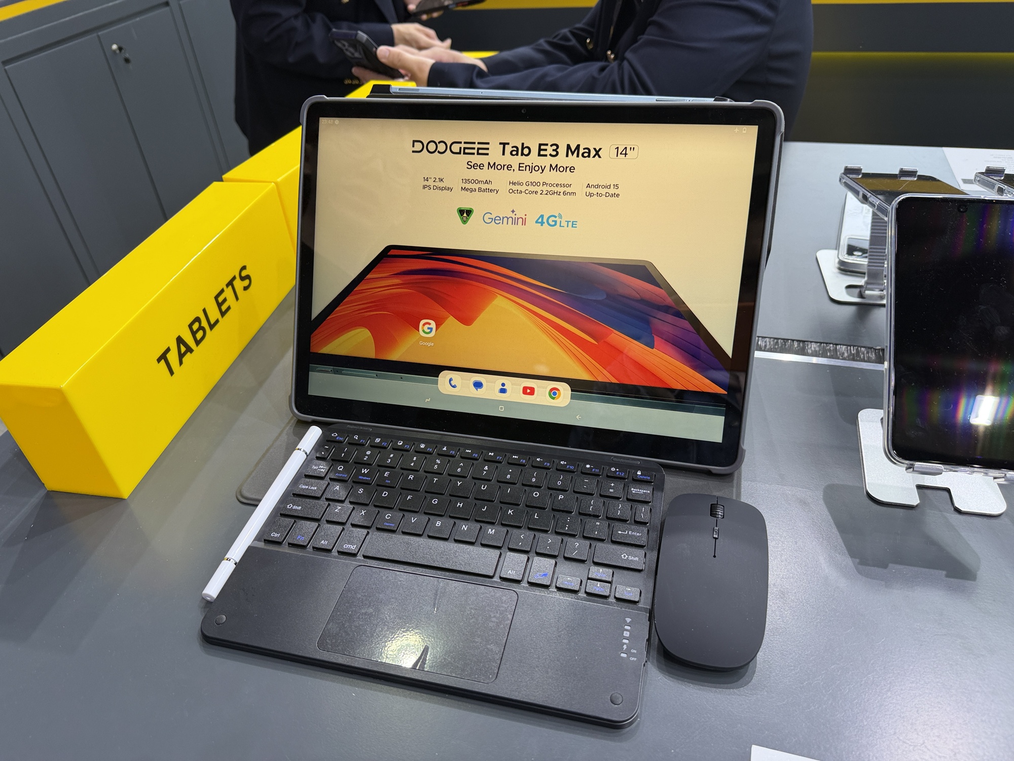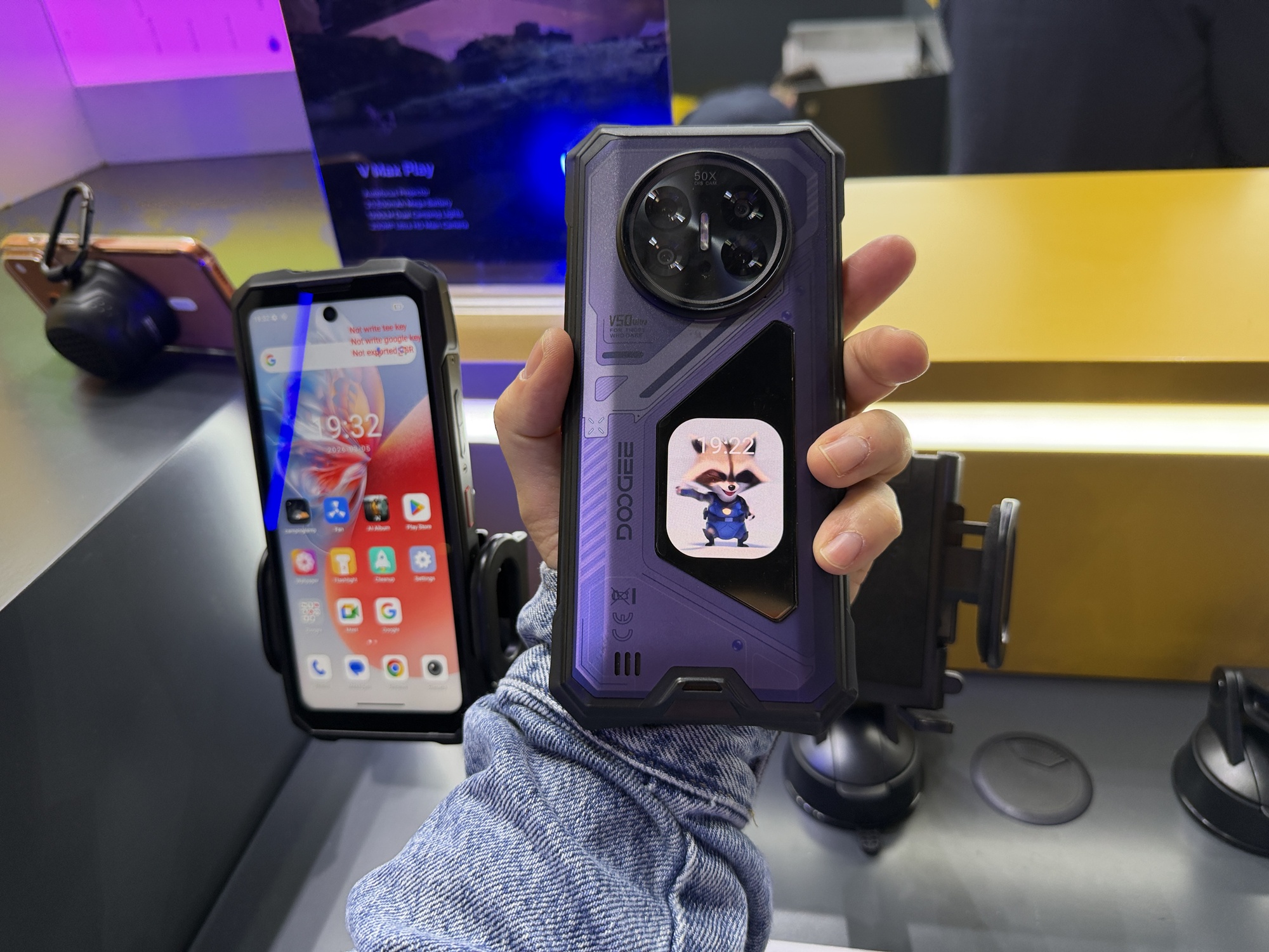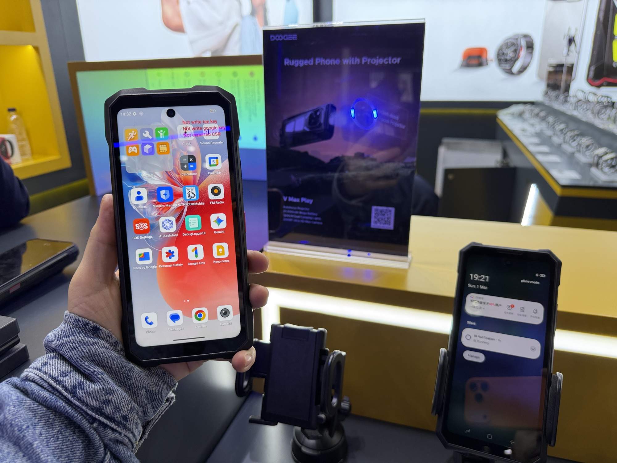Am văzut și telefoane cu proiector, ca Vmax Play, incluzând și lumina de camping. Seria V Max include telefoane cu proiector, telemetru laser, senzor Night Vision, corp ultra rezistent și dotări midrange. La final am văzut și tablete cu stylus și tastatură, cu ecrane de 14 inch chiar. Vă las cu video-ul întreg pentru a înțelege ce face Doogee mai precis.