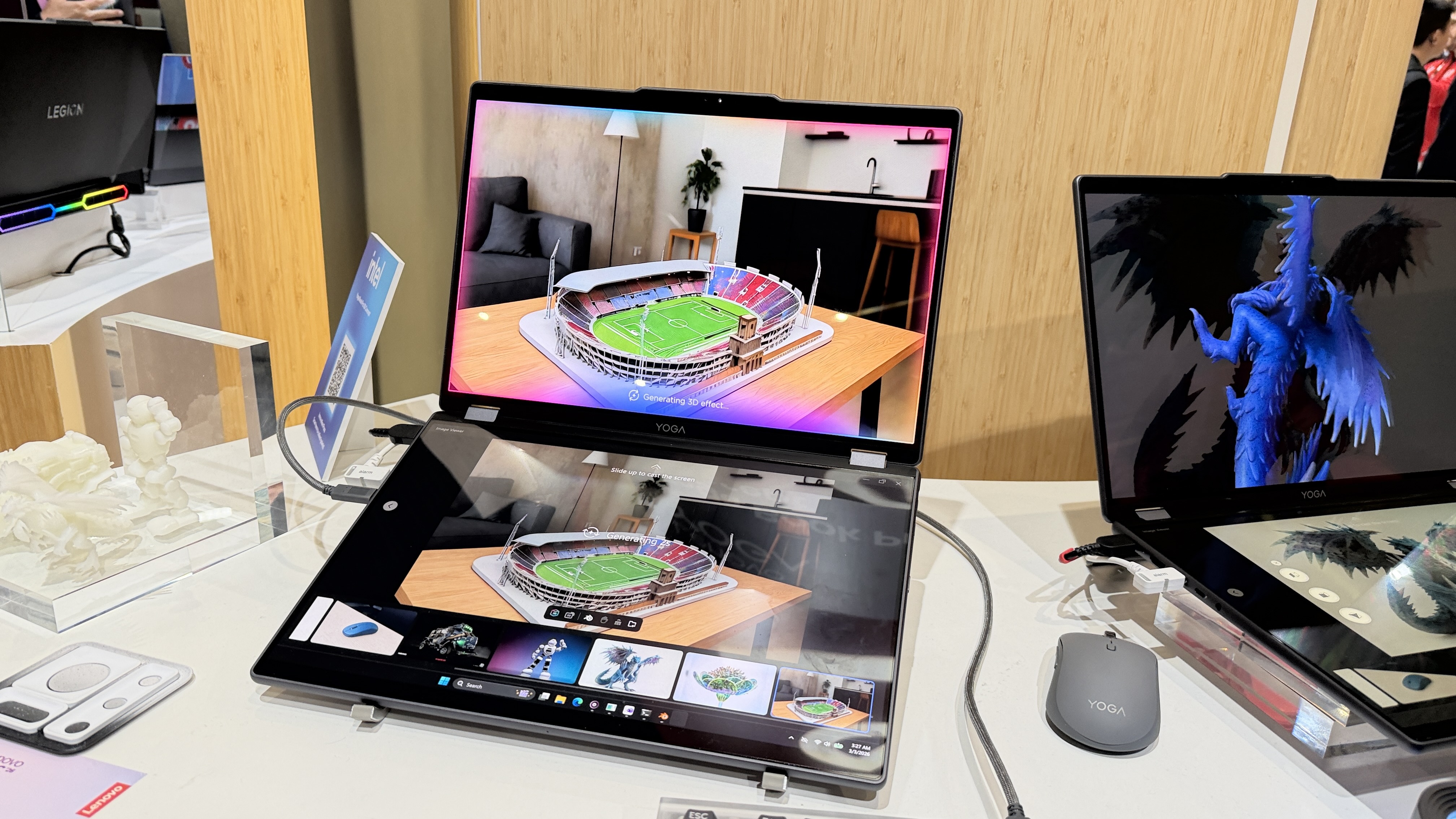 Lenovo aduce și produse experimentale la târguri de tech precum MWC 2026. A adus acolo un Lenovo Yoga Book 3D Concept, care a primit un hands on de mai jos. Mai văzusem laptopuri cu două ecrane de la Lenovo, dar acesta plusează cu ecrane 3D.
