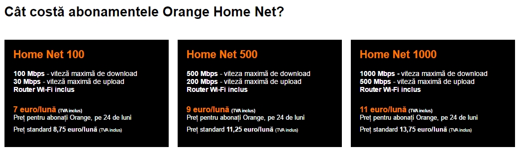 În cazul în care sunteți deja clienți Orange cu abonamente pentru serviciile mobile, prețul pentru aceste pachete de internet sunt cuprinse între 7 și 11 euro (cu TVA inclus). De asemenea, putem opta și pentru Orange TV, modalitate prin care primim acces la peste 160 canale TV, și posibilitatea de a urmări filmele și serialele preferate pe telefon, tabletă sau laptop, prin Orange TV Go.