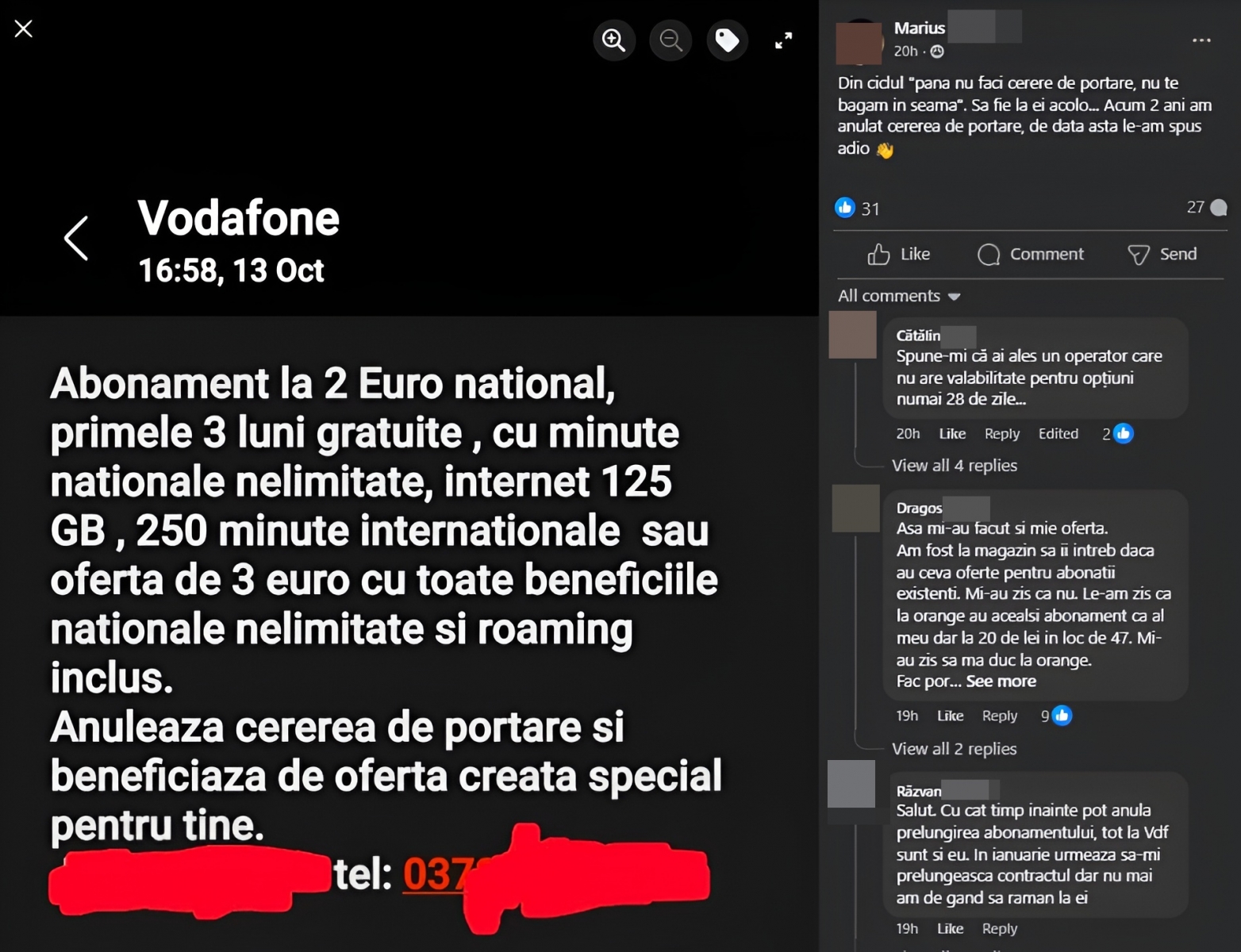 Nu e clar dacă TVA-ul era inclus sau nu, dar ofertele sunt destul de tentante, cu siguranță. Ofertele sunt oferite doar prin telefon, de către departamentul de retenție, și par să vină doar după ce clientul face o cerere de portare. E o mișcare „clasică” în lumea telecom, mulți operatori devenind „disperați” în momentul în care abonații se gândesc să își porteze numărul în altă rețea.