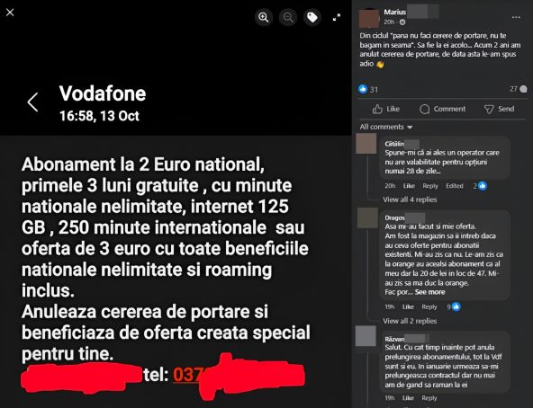 Operatorii de telefonie mobilă sunt într-o competiție continuă. Portarea a devenit o operațiune prietenoasă pentru mulți români, care apelează la această opțiune pentru a reduce costurile abonamentelor. Azi aflăm despre o astfel de situație, povestită de un cititor Mobilissimo pe grupul nostru de Facebook. Marius pare că a vrut să își porteze numărul către Orange, iar ulterior a fost sunat de reprezentanții Vodafone pentru a-l atrage cu oferte foarte bune. Detalii avem mai jos!