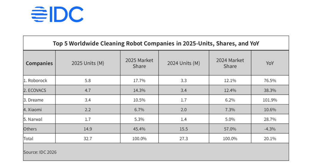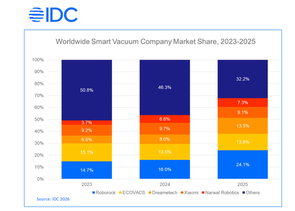 De altfel Roborock se află constant pe primul loc în clasamentele IDC încă din a doua jumătate a anului 2023. În 2025 a fost atinsă şi o cotă de piaţă de 24.1%, cea mai ridicată de până acum. Este al treilea an consecutiv, când marca bifează un număr 1 în acest segment. De remarcat, tot în clasamentele IDC că Roborock are locuri întâi pe piețe importante, precum SUA, Germania, Coreea de Sud.