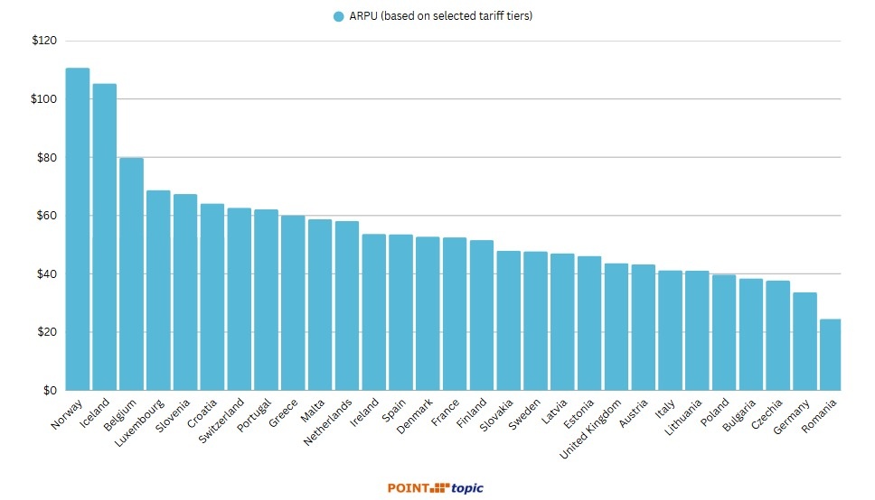 Concret, românii plătesc, în medie, doar 24,48 dolari/lună pentru internet prin fibră, cel mai mic ARPU din Europa. Spre comparație, în Norvegia, unde serviciile ajung și la 10 Gbps, ARPU-ul sare de 110 dolari/lună. Diferența vine din pachetele oferite, dar și din puterea de cumpărare din fiecare țară.