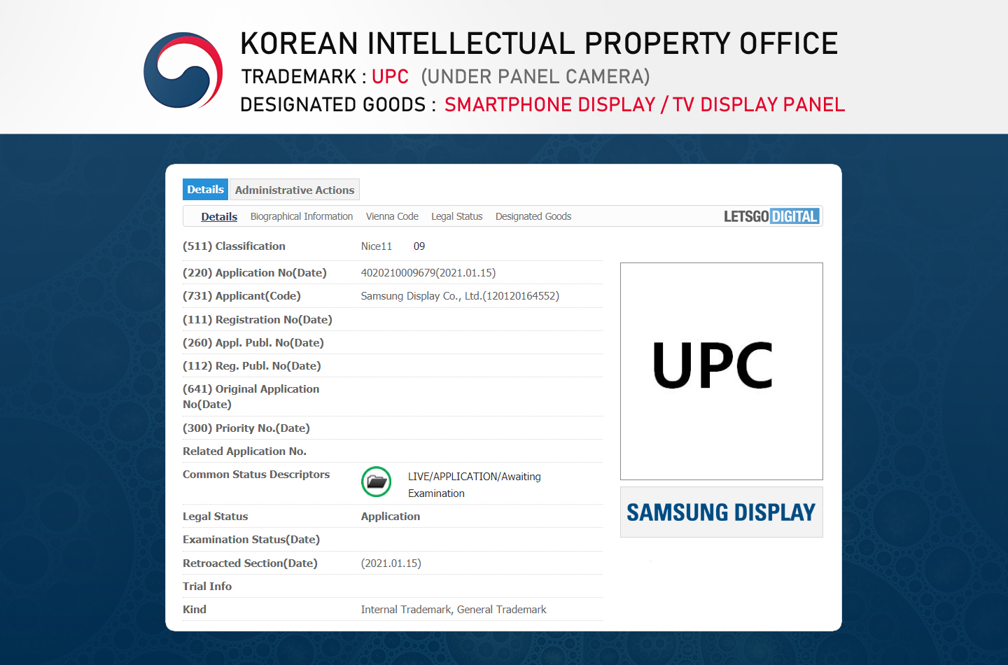 Samsung Display a înregistrat marca UPC (Under Panel Camera) oficial la KIPO (Korean Intellectual Property Office). Marca comercială UPC / Under Panel Camera, vizează în special telefoanele și Smart TV-urile. Totuși, după cum aflam acum câteva zile, compania sud-coreeană ar lansa prima dată un laptop cu ecran OLED și webcam ascuns sub acesta. S-ar numi Samsung Blade Bezel și ar fi un ultrabook cu muchii foarte înguste.