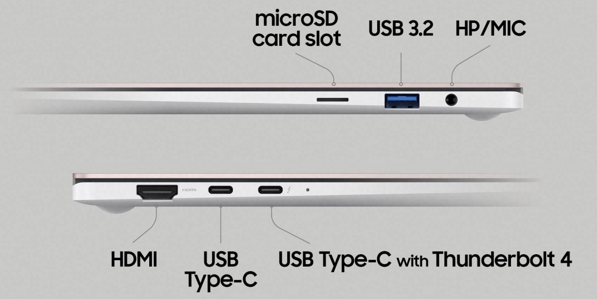 Samsung Galaxy Book Pro mizează pe portabilitate, cu un ecran de 13.3 inch, cu greutate sub un kilogram, dar există şi o variantă de 15.6 inch, nici ea grea. Ambele sunt foarte subţiri şi au ecrane AMOLED la bord, cu rezoluţie Full HD. La interior se afla procesoare Intel Core de Generaţie 11 (Core i3, i5 sau i7), dar şi 8, 16 sau 32 GB RAM LPDDR4X. Stocarea ajunge până la 1 TB şi este NVMe SSD. Variantele i5 şi i7 au grafică Iris XE, dar există şi o versiune cu placa GeForce MX450.