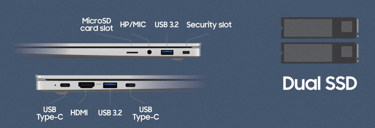 Are baterie de 54 Wh, care se încarcă via USB-C la 65W. Are difuzoare stereo, dar fără AKG. Cititorul de amprente din butonul Power este opţional. Are şi 4G LTE, porturi USB-C, USB-A, HDMI, jack audio, slot de securitate, microSD şi nano sIM. Porneşte de la 680 de euro.