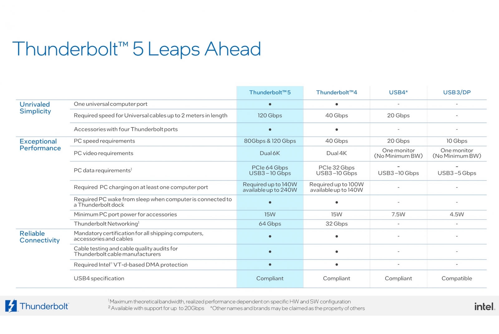 În 2021 Intel dezvăluia primele detalii despre Thunderbolt 5, iar compania prezenta tehnologia 80G PHY. Dorinţa era de a dublă throughput-ul lui Thunderbolt 5, faţă de ce avem pe Thunderbolt 4, de la 40 Gbps la 80 Gbps. Se pare că lucrurile sună chiar mai bine de atât.