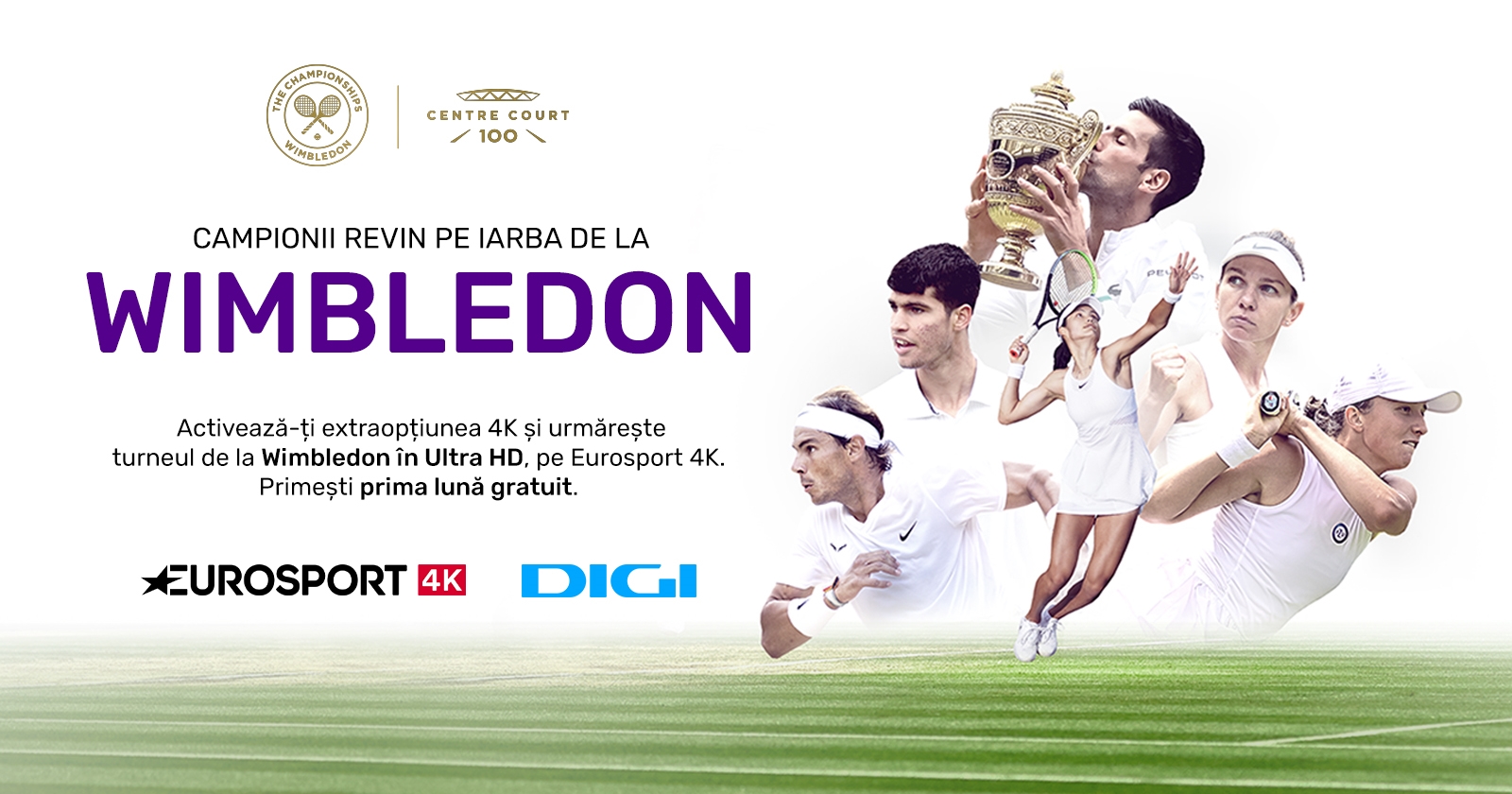 Turneul de tenis de la Wimbledon se desfășoară în perioada 27 iunie - 10 iulie și este transmis în direct și în exclusivitate pe platformele Eurosport. Pasionații de tenis au șansa să urmărească tenismenii preferați, printre care: Simona Halep, Novak Djokovic (cap de serie la simplu masculin), Iga Swiatek (la simplu feminin), Irina Begu, Mihaela Buzărnescu, Sorana Cîrstea, Rafael Nadal, Serena Williams.
