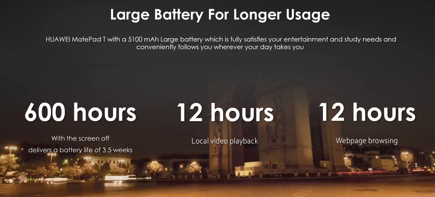Are o grosime redusă, carcasă din policarbonat cu textură mată și revenind la baterie, compania ne dezvăluie că autonomia este de până la 12 ore în regim de playback video, respectiv 12 ore de browsing web. În standby s-ar ajunge la 3.5 săptămâni autonomie. De asemenea, trebuie știut că această tabletă deși rulează Android, nu oferă și serviciile Google.