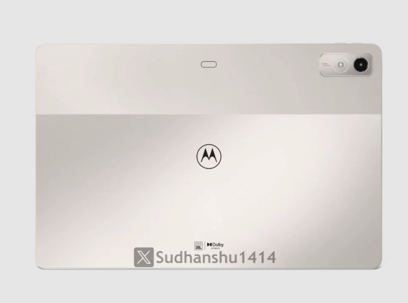 Apare și un conector magnetic în zona superioară care ar putea fi utilizat pentru o husă tastatură sau pentru alimentarea unui stylus. Vedem și logo-ul Moto amplasat central, iar un alt detaliu pe care îl aflăm este că tableta dispune de acustică Dolby și de difuzoare JBL.