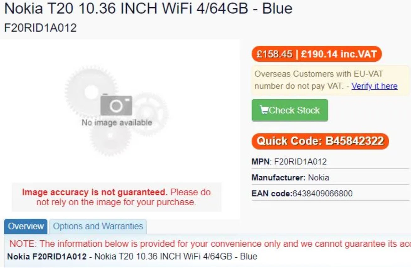 Tableta Nokia T20 este prima tabletă cu brand Nokia de la Nokia N1 încoace, din 2015. Pe atunci dispozitivul sosea în epoca pre-HMD, cu un pachet solid de dotări, dar şi un procesor nu prea apreciat, un Intel Atom. Revenim în 2021, unde găsim tableta Nokia T20 listată deja în RUsia, în variante Wi-Fi şi 4G. Ar avea 4 GB RAM şi 64 GB stocare, deci e clar vorba despre un produs de buget sau cel mult midrange.