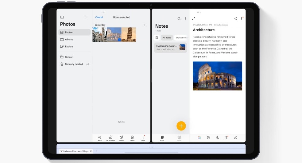 OnePlus Pad 3 rulează Android 15 și vine cu interfața Oxygen OS 15 aplicată peste. UI-ul implică un soi de dock, la fel cum vedem în cazul mai multor tablete de pe piață în acest moment. Multitasking-ul e susținut de opțiunea Open Canvas pe care am văzut-o pentru prima dată pe OnePlus Open.