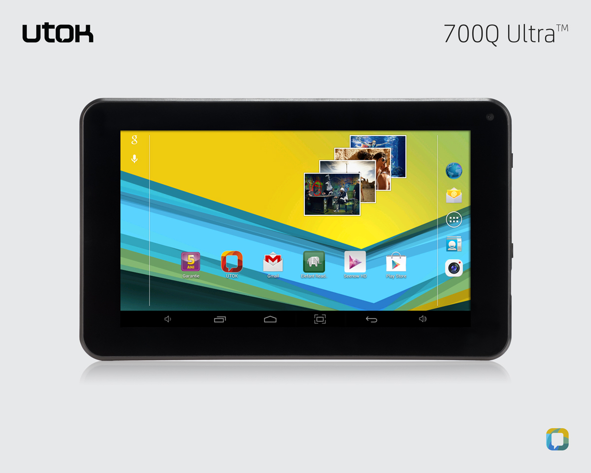 UTOK 700Q Ultra este o tabletă ultraperformantă, ce dispune de un display de 7 inch cu rezoluție XGA 1024x600 pixeli, un procesor quad-core de 1 GHz, un GPU PowerVR SGX544MP2, 1 GB RAM și 16 GB memorie internă. UTOK 700Q Ultra vine și cu un slot pentru carduri microSD de până la 32 GB. Aceasta rulează Android 4.2 JellyBean și poate fi achiziționată la prețul de 499 lei.