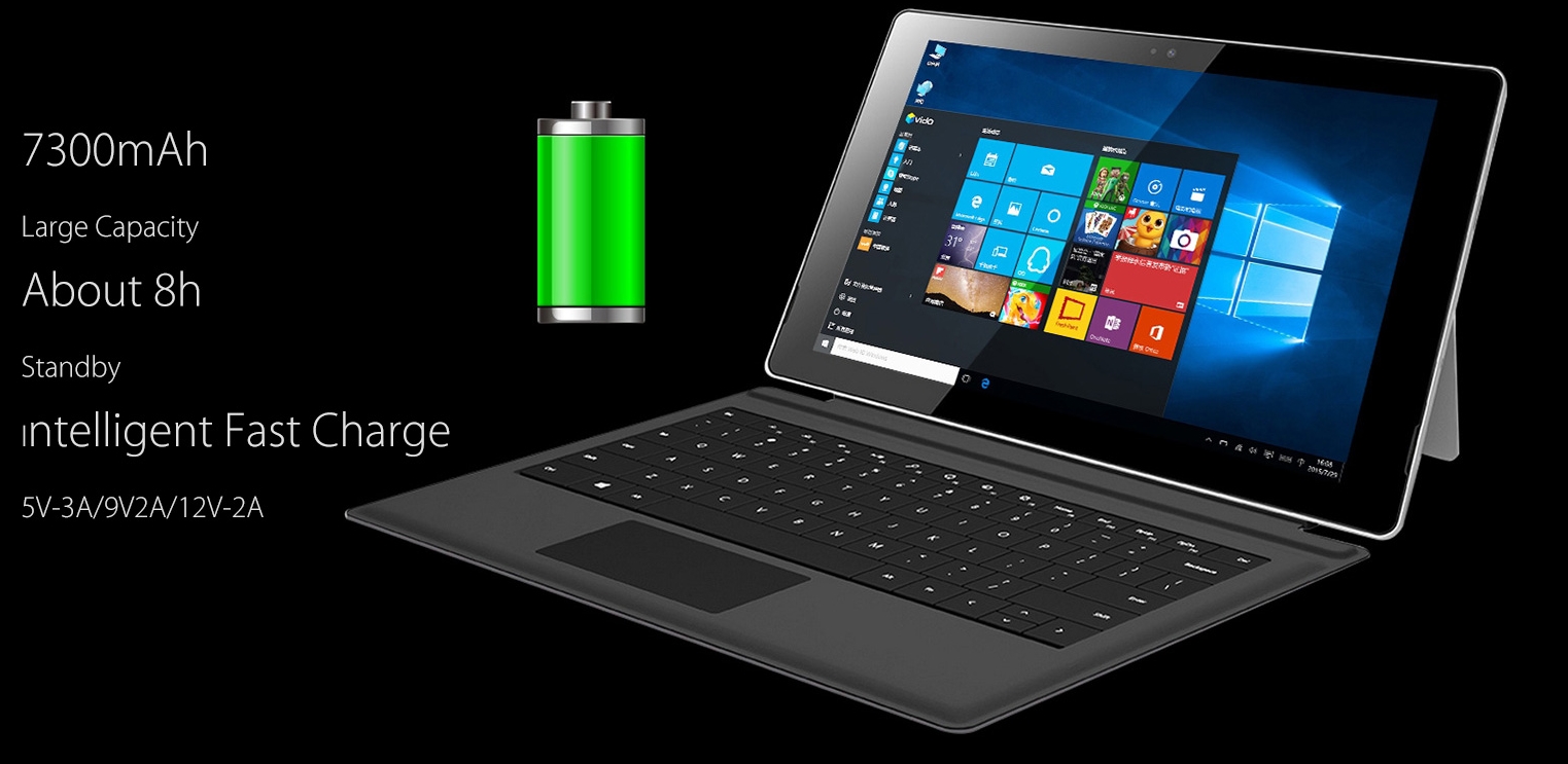 Tableta vine cu o baterie de 7300 mAh la pachet ce promite până la 10.4 ore de playback video, iar ca design primim o carcasă metalică ce cântărește 645 grame și măsoară 9.2 mm în grosime. La fel ca Microsoft Surface, și această tabletă beneficiază de un kickstand integrat ce face utilizarea alături de o tastatură wireless și un mouse mult mai facilă. După cum am precizat și mai sus, Vido W10 Elite rulează sistemul de operare Windows 10, și utilizatorii pot descărca mai multe limbi pentru afișare ulterior.