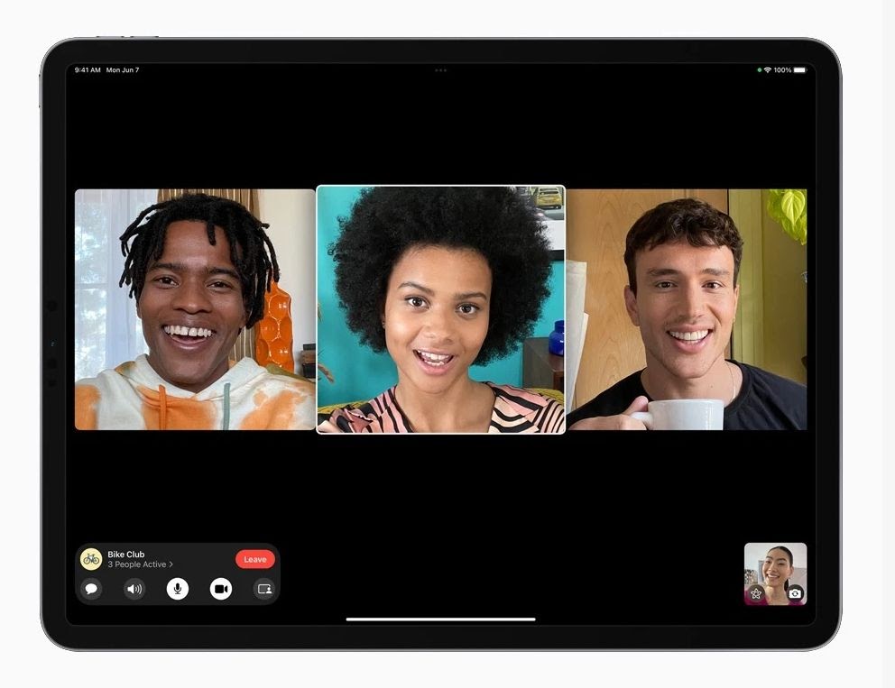 Facetime primeşte Spaţial Audio, care oferă naturaleţe vocilor şi un soi de surround pentru ele, o direcţie diferită de cea clasică. Avem şi izolare mai bună de zgomot, o vizualizare în grila, mod Portrait, blurand tot ce e în spate. FaceTime Links e o funcţie colaborativa, adăugând calendarele celor implicaţi şi invitaţi. SharePlay le permite celor dintr-un apel Facetime să asculte muzică sau să vadă filme împreună, dar şi să îşi partajeze ecranul.