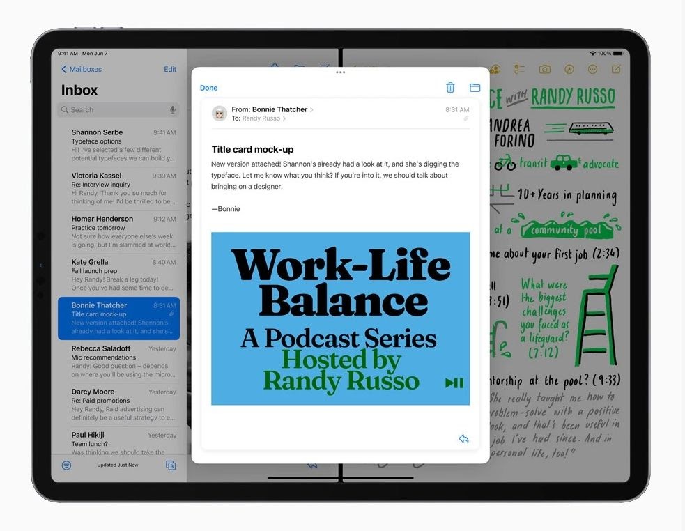 Aplicaţia Notes de pe iPad primeşte un upgrade, având suport pentru menţiuni, adică poţi ţăgui persoane şi să lucrezi colaborativ cu ele. Există şi o funcţie Quick Notes care îţi permite să iei notiţe rapid pe iPad, Mac sau iPhone, să capturezi conţinuturi din alte aplicaţii sau site-uri. Quick Note se activează cu un drag al lui Apple Pencil din colţul dreapta jos al iPad-ului.