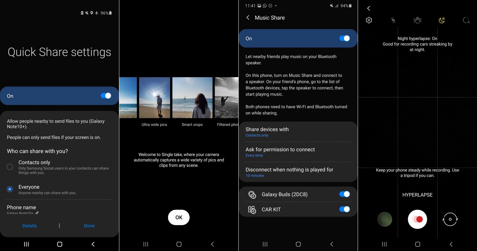 Pe lângă noua versiune One UI 2.1, se oferă aici și patch-ul de securitate din Aprilie 2020, dar și o serie de funcții foto. Printre acestea avem modul Single Take, Night Hyperlapse, modul video Pro, dar și o îmbunătățire pentru Night Mode. Aceste funcții ajung pe telefoanele Galaxy S10, Galaxy S10e, Galaxy S10+, Galaxy Note 10+ și Galaxy Note 10.