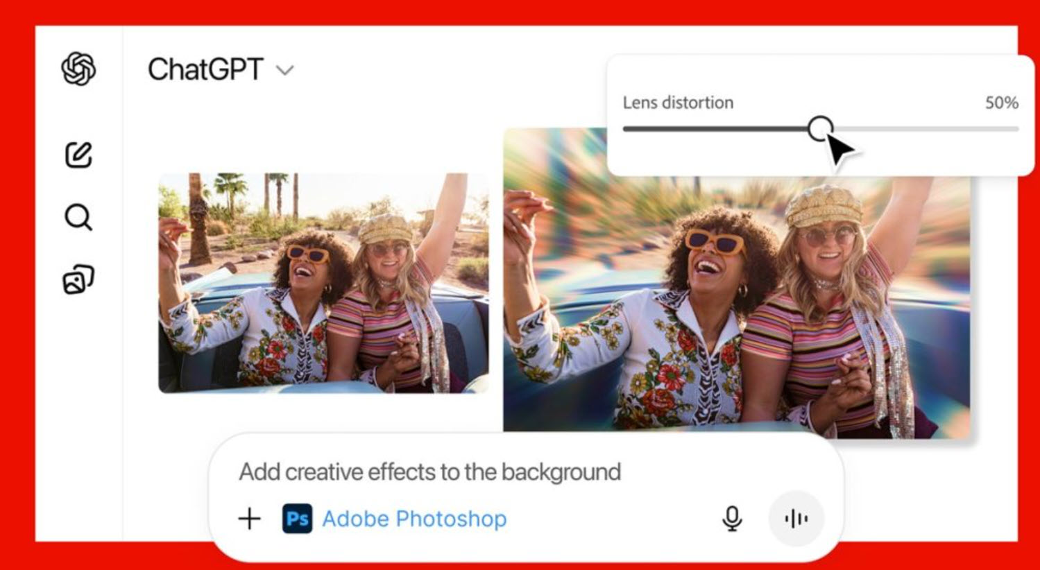Adobe a lansat pe 11 decembrie 2025 variante ale celor mai populare softuri ale sale cu integrate ChatGPT. E vorba despre Adobe Express, Photoshop şi Acrobat for ChatGPT, iar AI-ul va permite editarea de imagini, designul de conţinut şi adminstrarea de documente direct prin comenzi date lui ChatGPT.