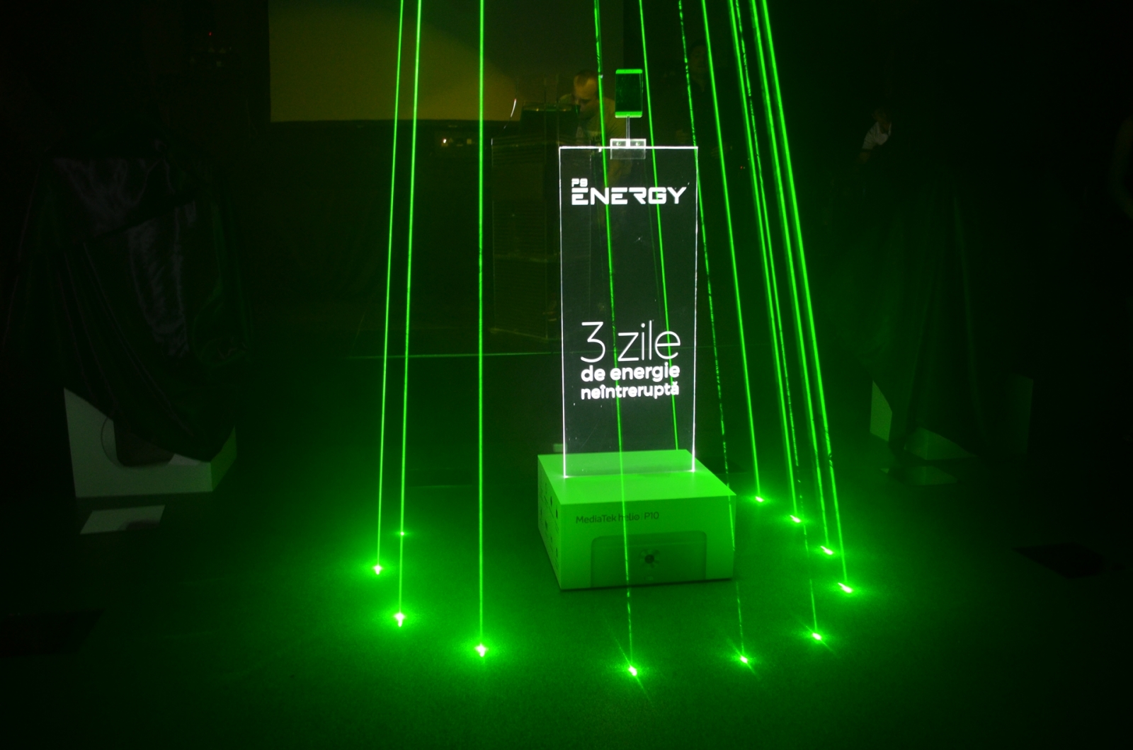 Revenind la noua serie, aflați că aceasta este compusă din 3 modele pentru început, după cum urmează: Allview P9 Energy, Allview P9 mini și nu în ultimul rând Allview P9 Lite. Evenimentul de astăzi a debutat cu un joc de lumini laser foarte spectaculos, fiind un moment puternic apreciat de către jurnaliștii prezenți la fața locului. Vedeta principală din noua gamă s-a afișat sub același joc de lumini laser, după cum puteți vedea și în fotografia de mai sus.