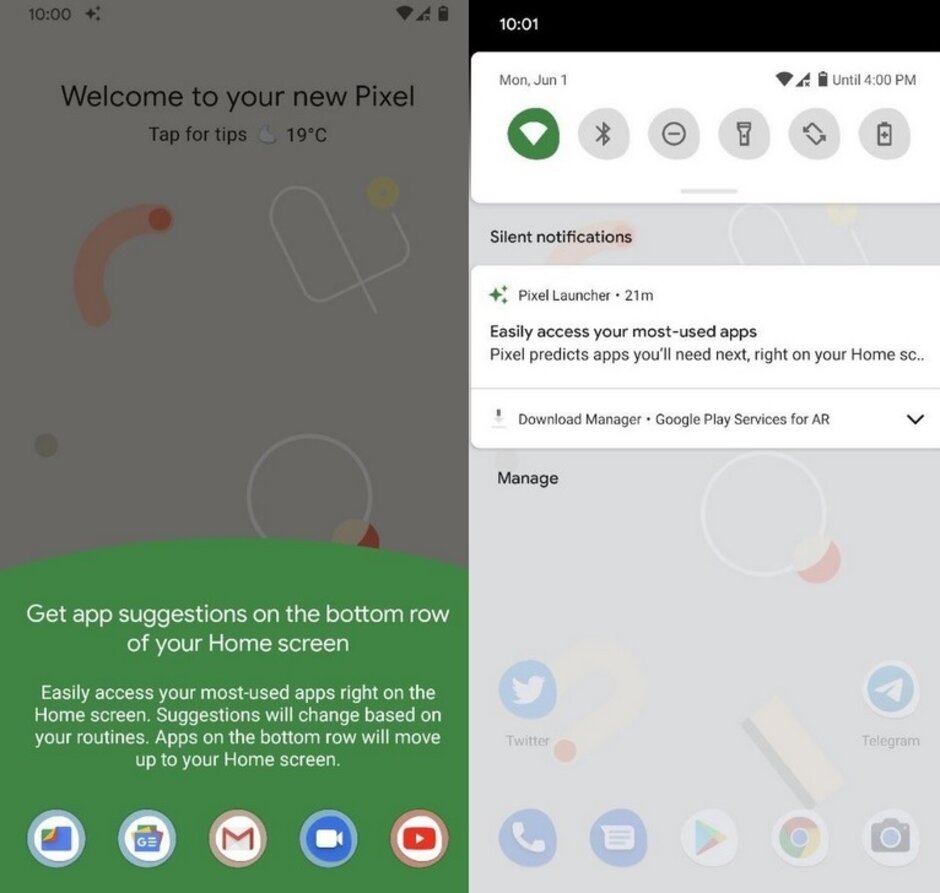Android 11 va permite utilizatorilor să controleze și sugestiile de aplicații pe care le vor primi din partea launcher-ului Pixel, sugestii bazate pe aplicații recent utilizate, cele mai utilizate și pe rutine. Astfel, aplicațiile sugerate pe care Google crede că le vom deschide ulterior pot fi setate să apară în zona inferioară a ecranului de start.