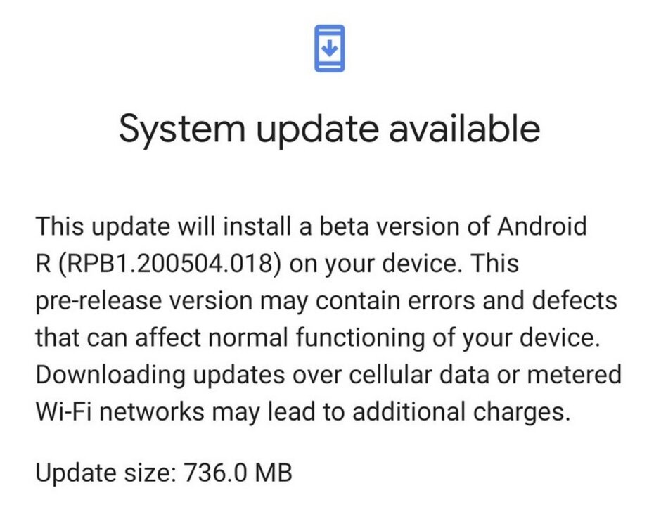 Deși petrecerea de lansare a lui Android 11 Beta a fost amânată din cauza protestelor din SUA, iată că noul release software a ajuns deja pe telefoane, dintr-o greșeală aparent. Descoperim că o serie de utilizatori Google Pixel 4 XL au primit o notificare cu privire la disponibilitatea acestui update Beta, fiind disponibil spre instalare un pachet de actualizare software de 736 MB.