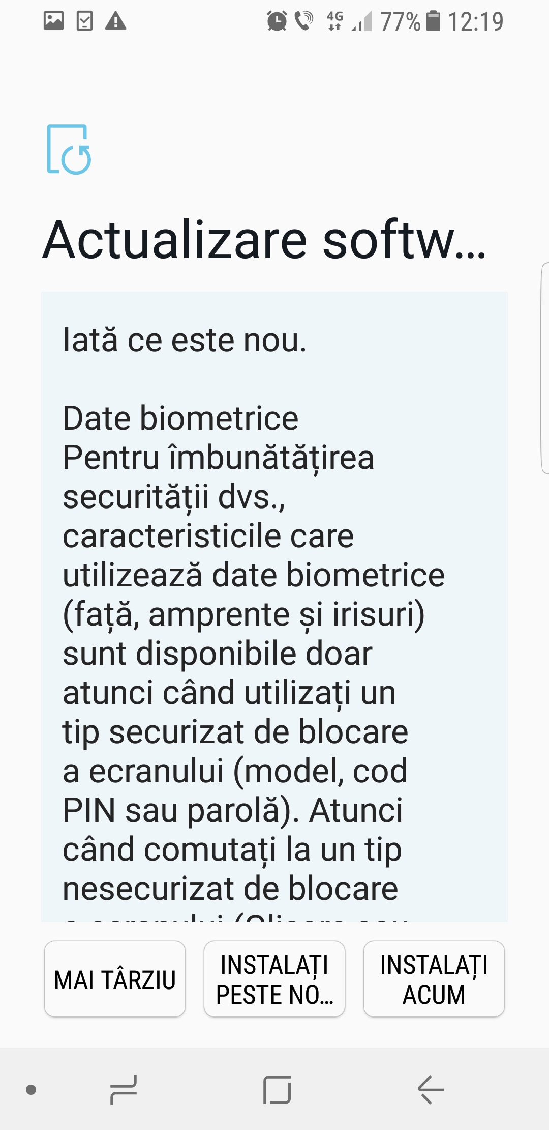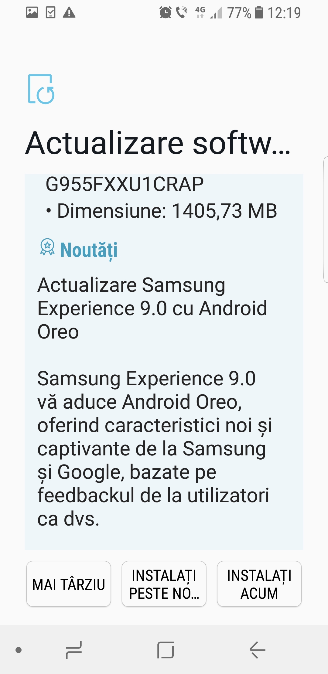 A urmat apoi distribuirea versiunii finale, dar la scurt timp v-am informat că update-ul a fost sistat datorită unui bug destul de serios ce cauza restartul telefoanelor. Nu a durat mult și a sosit și versiunea modificată, iar abia acum pe data de 7 martie avem iată ocazia să instalăm update-ul și pe dispozitivele S8/S8+ achiziționate pe cale oficială din România.