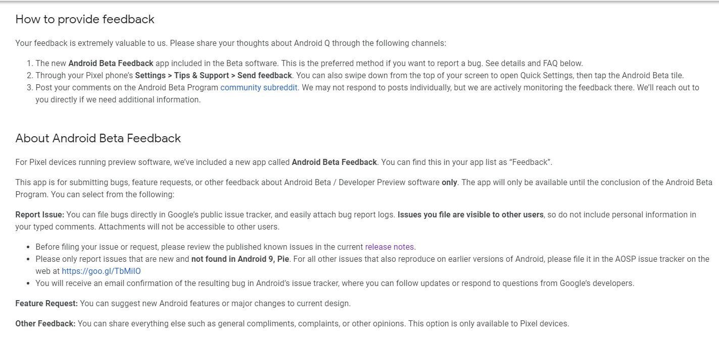 Între timp aflăm că procesul de feedback va fi mai intuitiv pentru testeri odată cu Android Q Beta, astfel că pentru a semnala un bug tot ce vom avea de făcut va fi să navigăm către secțiunea "Send Feedback" din cadrul categoriei "Tips & Support" regăsită în meniul de setări.