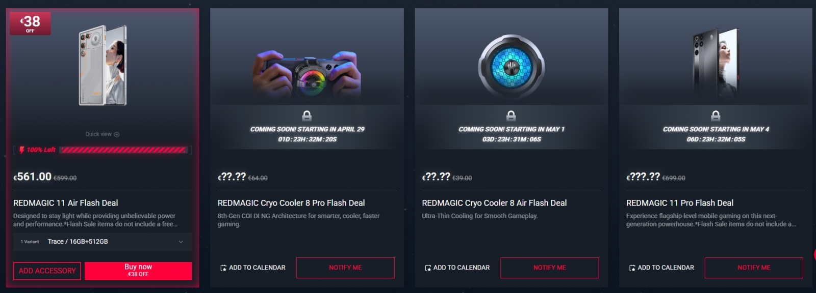 Aflăm pentru început că în centrul acestui eveniment aniversar se află smartphone-ul Redmagic 11 Pro, cu reducere de 20 de euro și costă 679 euro. Fiecare achiziție va fi însoțită de un cadou de până la 19.9 euro și implică o protecție pentru ecran sau o husă de protecție. Poți economisi între 5-8 euro dacă alegi și alte accesorii în coșul de cumpărături alături de telefon.