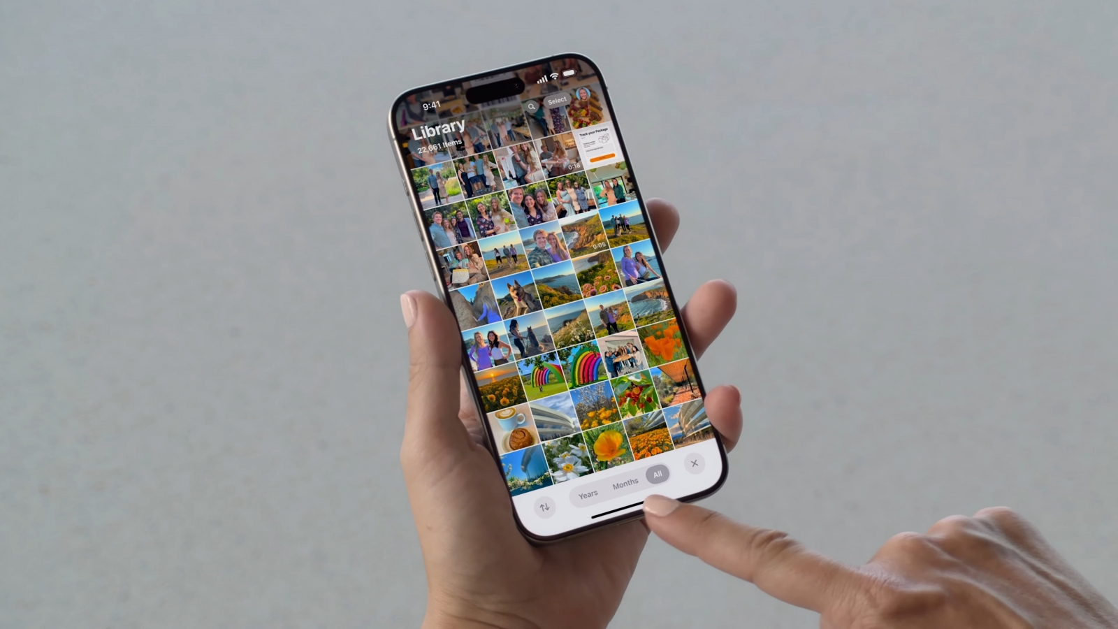 Apple promite experiență nouă și mult îmbunătățită a aplicației Photos, optimizată pentru a gestiona biblioteci mari. Funcțiile includ sortarea fețelor și posibilitatea de a fixa colecțiile pentru acces rapid. Photos va grupa automat oamenii și animalele de companie în colecții, accesibile prin noua vizualizare tip carusel.