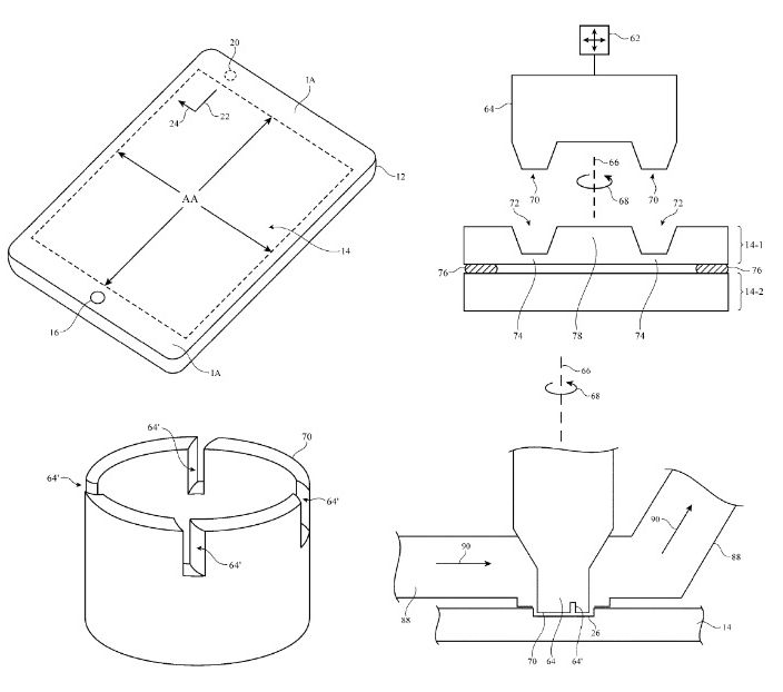 Apple ar fi interesată de panouri care includ orificii foarte mici pentru senzori, cameră şi elementele Face ID. Astfel, s-ar scuti de integrarea celebrului "breton", apărut deja pe 2 generaţii de iPhone-uri. Brevetele sale noi indică faptul că panouri viitoare frontale pentru iDevice-uri vor fi găurite cu un soi de burghiu special care va crea o incizie în formă de inel.