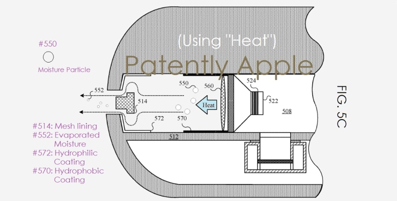 Aflăm că firma din Cupertino definește aici "umezeala" referindu-se la apa proaspătă, apa sărată, lichide, gaze, dar și aburi. Sistemul în cauză include diferite componente printre care și o protecție hidrofobă sau bobine magnetice capabilă să genereze suficientă căldură astfel încât să evapore particulele de umezeală de la interiorul difuzorului.