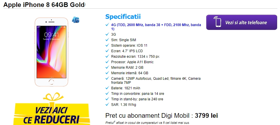 În cazul în care așa stau lucrurile, oferta va fi tare atractivă și se vor găsi clienți cu siguranță. Pe de altă parte, iPhone 8 este listat de către operator la suma de 3.799 lei în varianta cu 64 GB de stocare flash ce vine pe auriu sau negru. Deși apariția acestor telefoane este primită cu brațele deschise, un lucru la care trebuie să lucreze serios operatorul este disponibilitatea produselor, asta pentru că mulți clienți așteaptă luni bune pentru a le fi livrate terminalele.