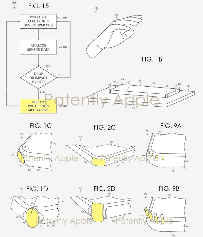 Printre ele se află și unul care acoperă ecrane integrate lateral pe iDevice-uri, ducând cu gândul la un telefon sau tabletă fără butoane, ci cu o zonă tactilă în loc. Un alt brevet are legătură cu terminalele pliabile sau chiar flexibile. Iniţial Apple înregistra această invenţie în Europa şi primea brevete de pliabile inclusiv în 2017. Ni se prezintă multiple moduri de pliere, unul cu două secţiuni laterale care se îndoaie în spatele corpului central şi unul cu o zonă de balama şi o singură parte pliabilă.