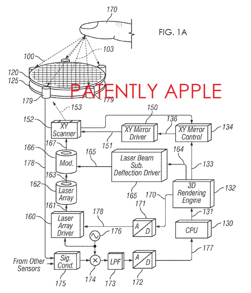E vorba despre display-uri holografice interactive pentru modelele Mac și pentru iDevice-uri că iPhone și iPad. în documentele oficiale stă scris că pe viitor un media player, telefon sau PC va oferi o experiență tridimensională de de vizualizare și interacțiune, fără a fi nevoie de un mediu de reflexie sau de a purta ochelari 3D. Invenția include și o sursă de lumină care produce una sau mai multe raze, bazându-se pe date legate de o imagine ce trebuie afișată.