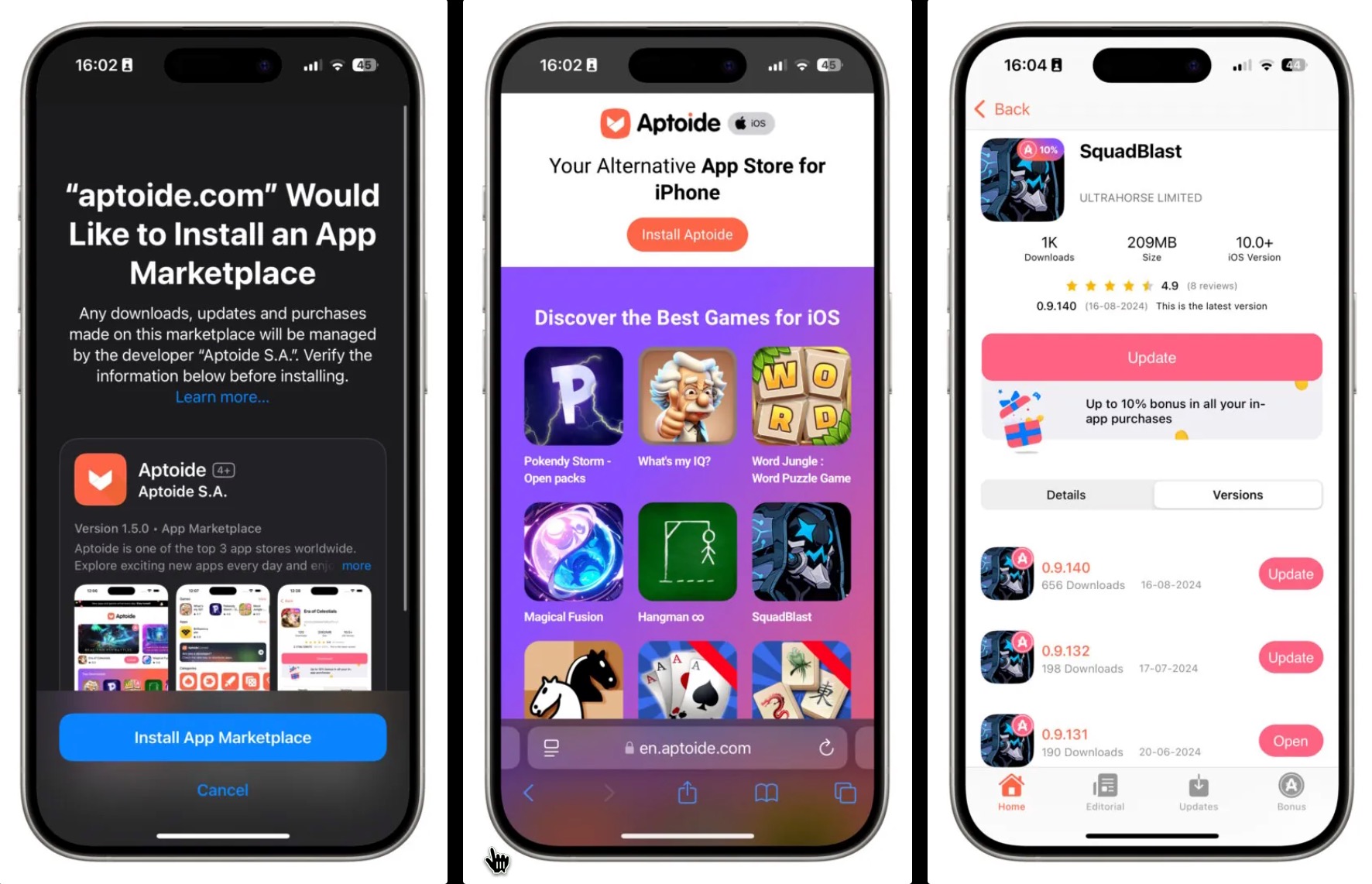 Pe Android, instalarea manuală a versiunilor anterioare ale aplicațiilor este posibilă de mult timp prin diverse surse externe, inclusiv Aptoide. Însă pe iOS, Apple nu permite acest lucru. Odată ce o aplicație este actualizată, utilizatorii sunt obligați să rămână la cea mai nouă versiune, indiferent de problemele apărute. Nici Google Play, nici App Store nu oferă o soluție pentru cei care vor să revină la o versiune anterioară a unei aplicații. Acest lucru face ca Aptoide să devină o alternativă atractivă pentru utilizatorii iOS din UE, în special pentru gameri.