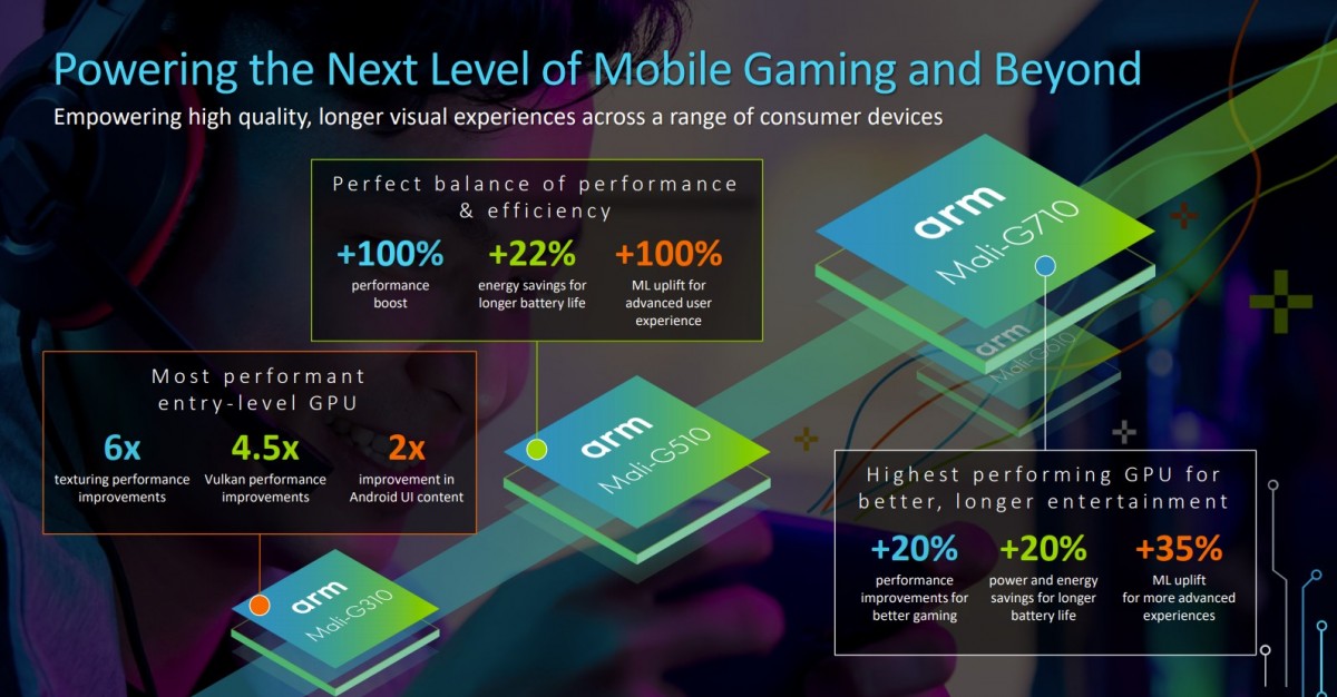 Nu în ultimul rând, Mali G310 va fi utilizat în cazul terminalelor low-end și promite o performanță de 4.5 ori mai bună în Vulkan. De asemenea, randarea UI-ului Android se dublează în acest caz
