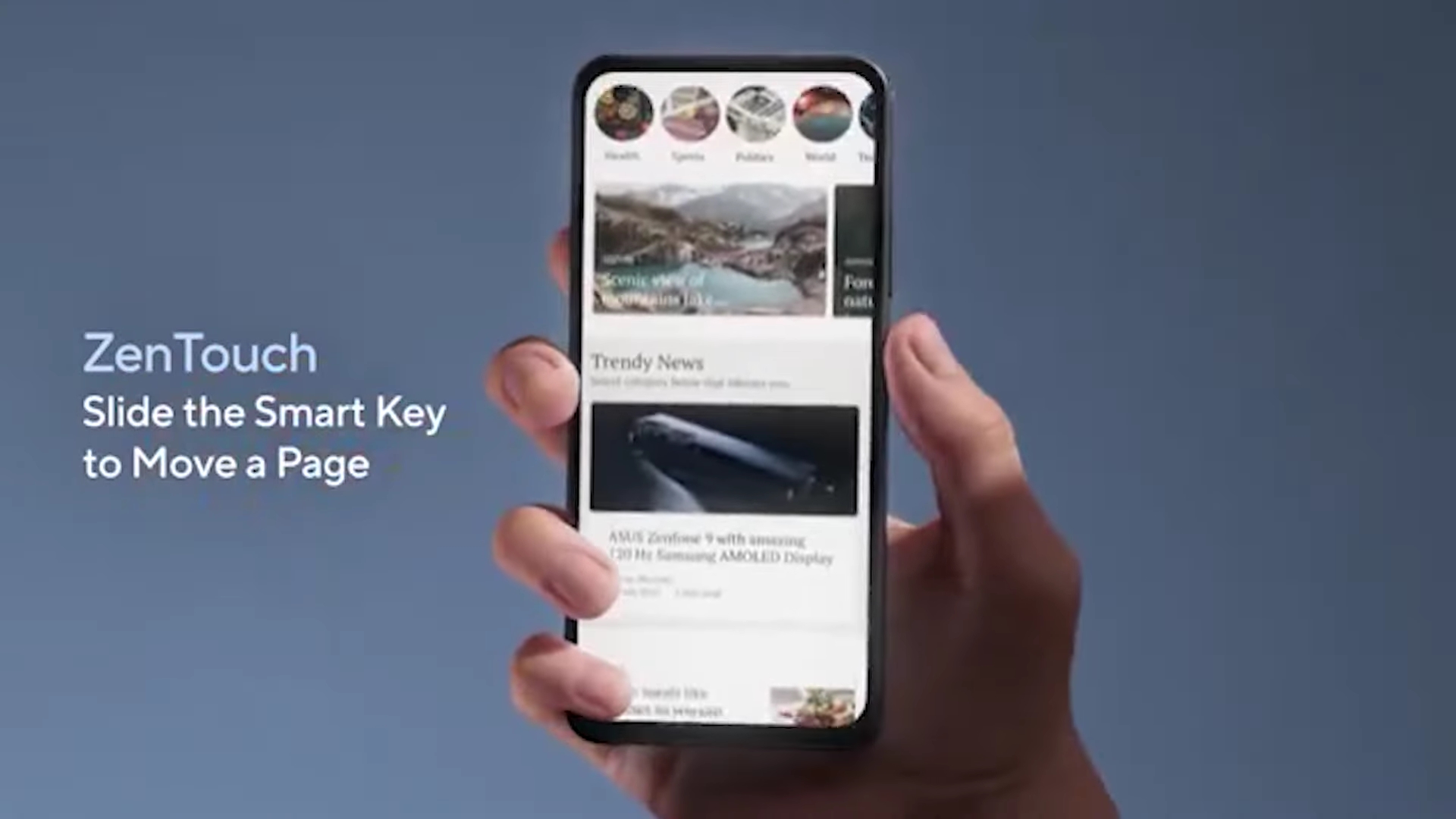ASUS Zenfone 9 va aduce o ramă metalică plată,iar butonul power/unlock care integrează și scanner-ul de amprente este numit butonul ZenTouch și mai are o funcționalitate. La gesturi tip slide realizate pe suprafața acestuia vom da scroll în paginile web fix precum ni se prezintă și în clipul video de mai sus.