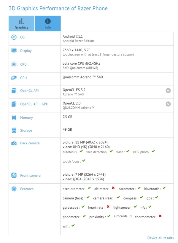 Construcţia e realizată dintr-o singură bucată de metal, deci Razer nu aderă la clasicul "sandwich de sticlă". Judecând după ultimele scăpări în benchmark-uri, ar trebui să vedem la bord 64 GB stocare, un procesor Snapdragon 835, Android 7.1 ca OS şi o rezoluţie Quad HD. Să nu vă mire dacă acest produs vine cu jocuri la pachet, eventual cu un gamepad sau o pereche de căşti profi.