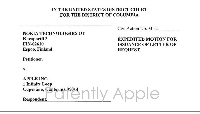 Nokia a solicitat asistență juridică internaţională, pentru a obţine documentele şi depoziţiile din cazul Apple versus Samsung. Pentru a te lupta cu Apple ai nevoie de toate uneltele legale folosite şi de alte firme contra gigantului american, deci are sens solicitarea Nokia. Finlandezii au făcut şi o cerere "Cease and Desist" contra Apple în ianuarie 2017.
