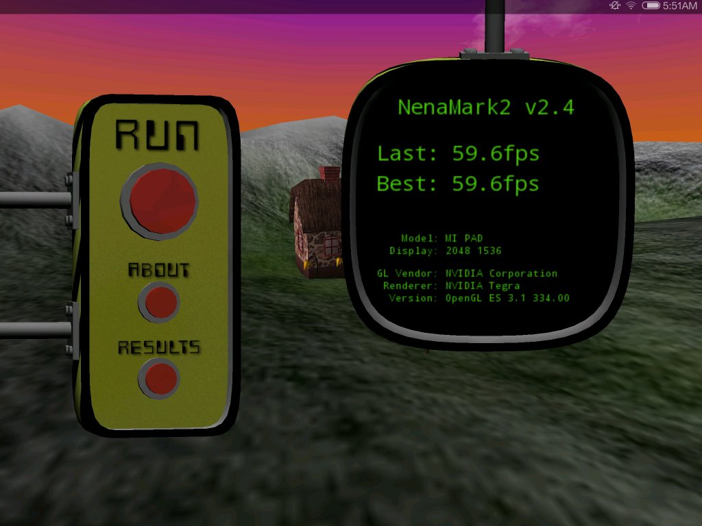 în NenaMark 2 am atins 59.6 FPS cu Xiaomi Mi Pad și incredibilul sau GPU cu 192 de core-uri, puțin sub cele 59.9 FPS de pe Galaxy Note Pro 12.2 și peste cele 56.6 FPS ale lui TF701T. în Vellamo (noul Vellamo) avem 2977 puncte pe tableta Xiaomi, în vreme ce modelul ASUS cu Tegra 4 atinge 3118 puncte, iar Galaxy Note Pro 12.2 are parte de 1794 puncte. 3DMark, probabil cel mai relevant test ne aduce un scor enorm, de 25.321 puncte pe Xiaomi, mult peste cele 14.629 puncte ale lui iPad Mini Retina și peste cele 11115 puncte ale lui TF701, dar și peste cele 12784 puncte ale lui Galaxy Note Pro 12.2.