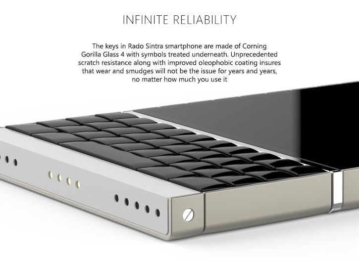 Rado Sintra rulează BlackBerry 10.3 și vine cu un concept interesant de tastatură, numit Phantom Keyboard. Astfel, simbolurile tastaturii apar doar când telefonul este funcțional și dispar când nu e utilizat. Butoanele tastaturii sunt fabricate din Gorilla Glass 4, tratat oleofobic. Ca și telefoanele Vertu și acest model de lux are parte de un serviciu Concierge, care la dispoziția utilizatorului la orice oră din zi.