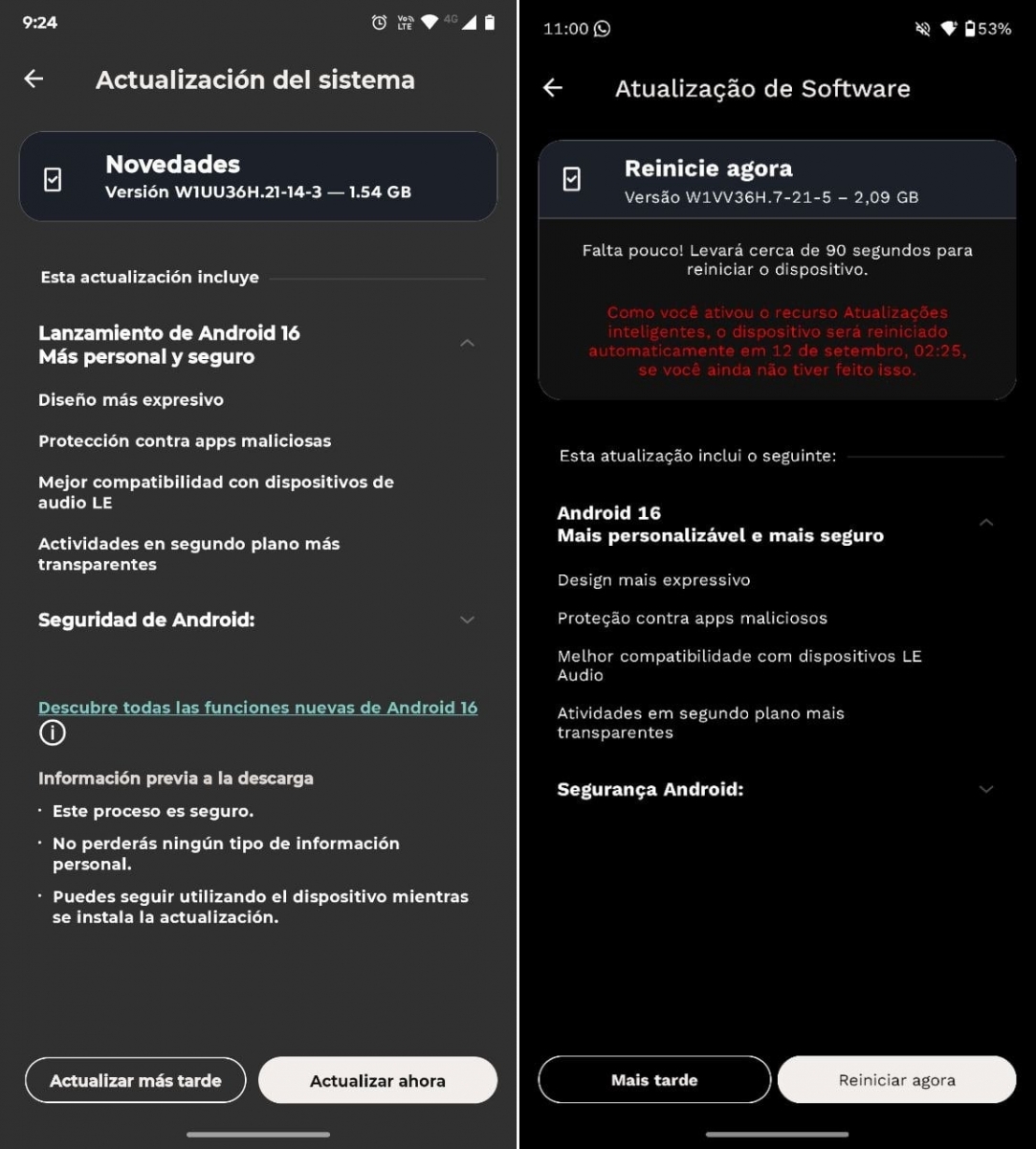 Pentru edge 60 Pro avem firmware-ul W1VV36H.7-2-1-5 și un pachet de aproximativ 2 GB. În cazul modelului Fusion mai sus amintit se trece la versiunea firmware W1UU36H.21-14-3 și pachetul are 1.54 GB. Ca noutăți aduse de Motorola odată cu această actualizare la Android 16 avem mai multe opțiuni de customizare, un design mai expresiv și protecție sporită împotriva aplicațiilor malițioase.