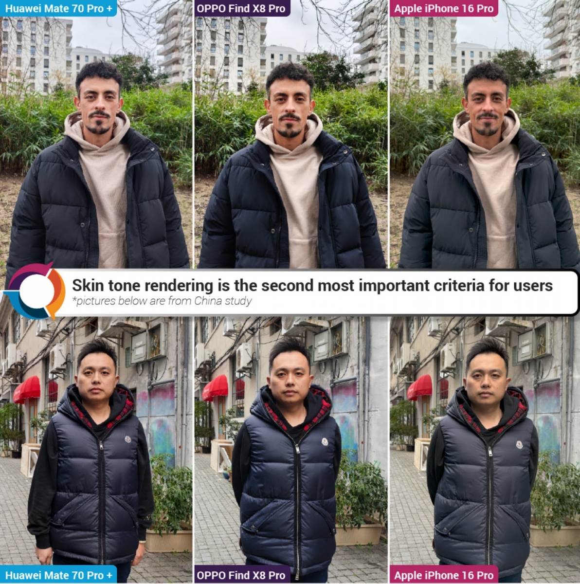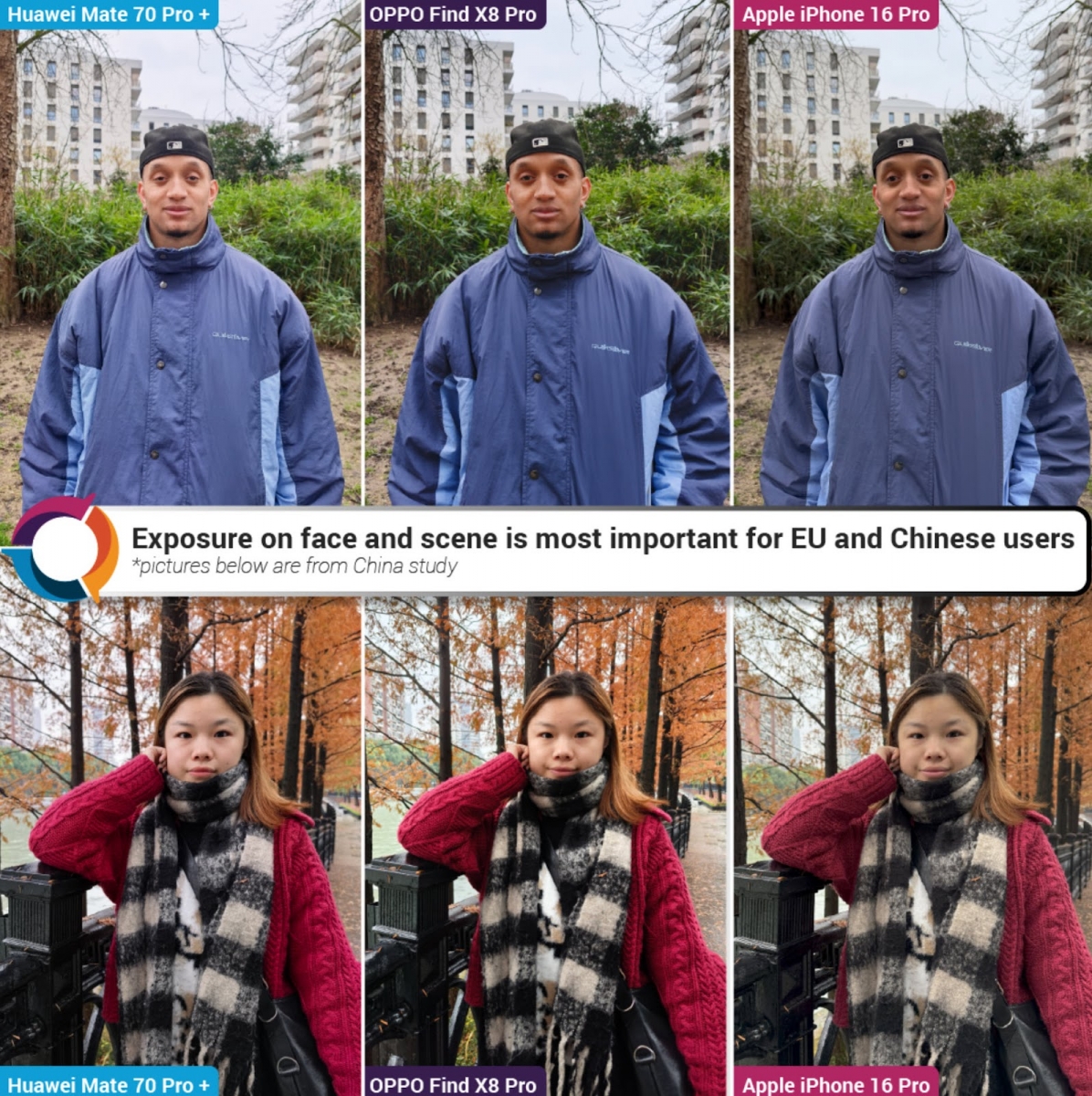 Se pare că OPPO Find X8 Pro şi Huawei Mate 70 Pro+ sunt la şefia clasamentului în zona de Portret. Au stat bine în special la balansul de alb şi expunere, dar s-au descurcat şi în low light.