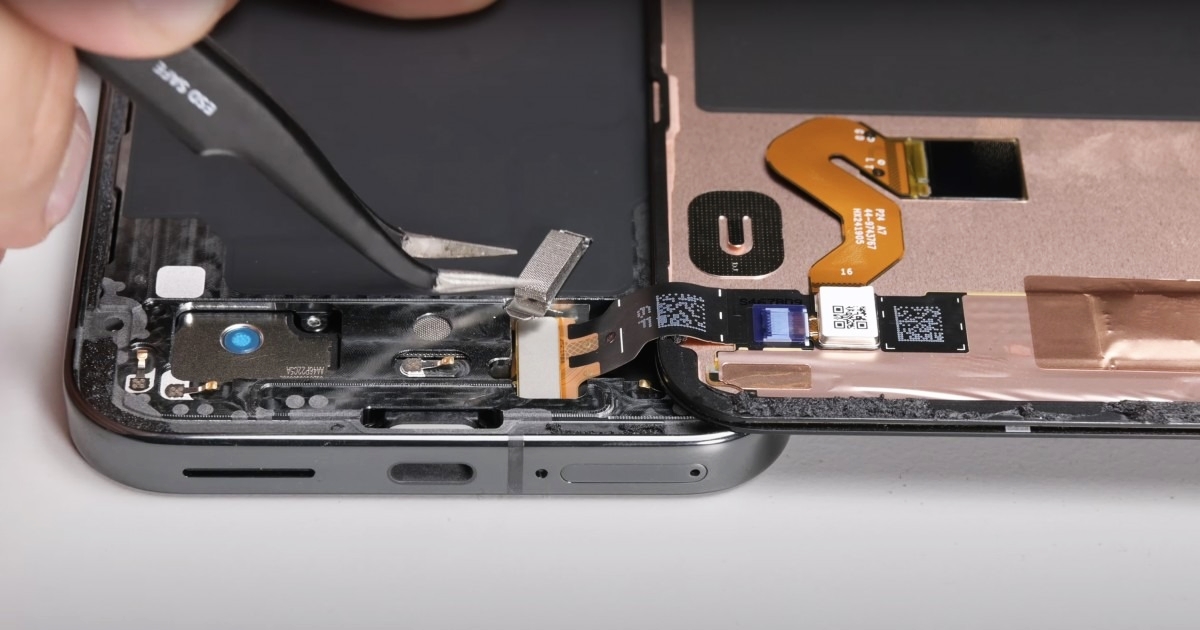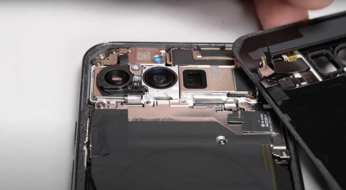 Începem cu disecţia iFixit, de la care aflăm că telefonul are un design dual entry, care îţi permite să începi reparaţiile fie scoţând ecranul, fie scoţând placa de sticlă din spate. Asta înseamnă că devine mult mai facil procesul de înlocuire a ecranului. Dacă ai nevoie să înlocuieşti bateria, atunci începi cu spatele, dar... e o problemă. Se pare că bateria e fixată foarte bine şi nu e chiar uşor de scos. Sunt nişte "urechi" glisante cu care trebuie să o scoţi.