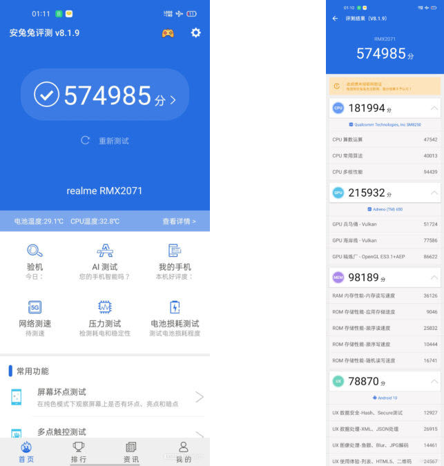 Telefonul în cauză este cunoscut sub numele de cod Realme RMX2071 şi este bazat pe procesorul Qualcomm Snapdragon 865 (listat aici ca platformă mobilă Qualcomm SM8250). Scorul este de 574.985 de puncte, depăşind precedentul record de 560.217 puncte, atins de un presupus Xiaomi Mi 10. Ambele telefoane au procesoare Snapdragon 865 la interior şi se anunţă a fi un CPU foarte puternic, regăsit pe toate flagship-urile importante cu Android în acest an. Îl aşteptăm şi pe Galaxy S20 în varianta americană şi chineza, pe OnePlus 8, LG G9 şi Google Pixel 5.