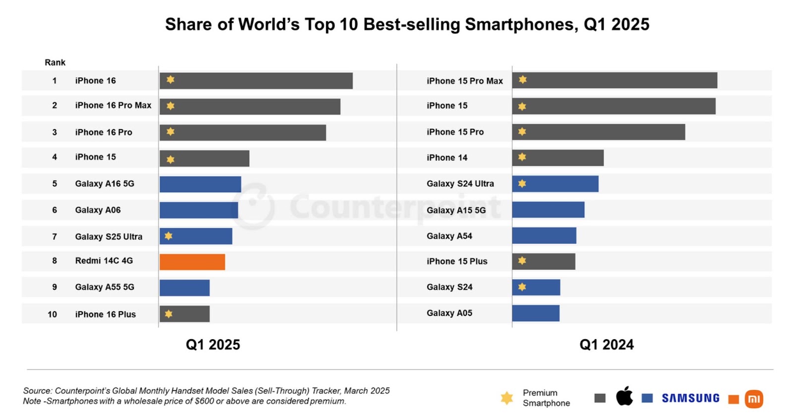 Iată cum arată clasamentul complet al celor mai vândute telefoane în T1 2025: