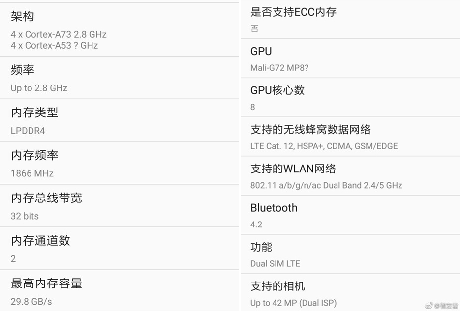 Se oferă suport pentru memorie RAM LPDDR4 la o frecvență de 1866 MHz, un GPU Mali-G72 MP8 și un modem LTE Cat.12. Printre elementele de conectivitate se mai numără Wi-Fi 802.11 a/b/g/n/ac și Bluetooth 4.2. Cel mai inedit aspect în cazul de față este acela că procesorul este dezvoltat folosindu-se procesul de 10nm.
