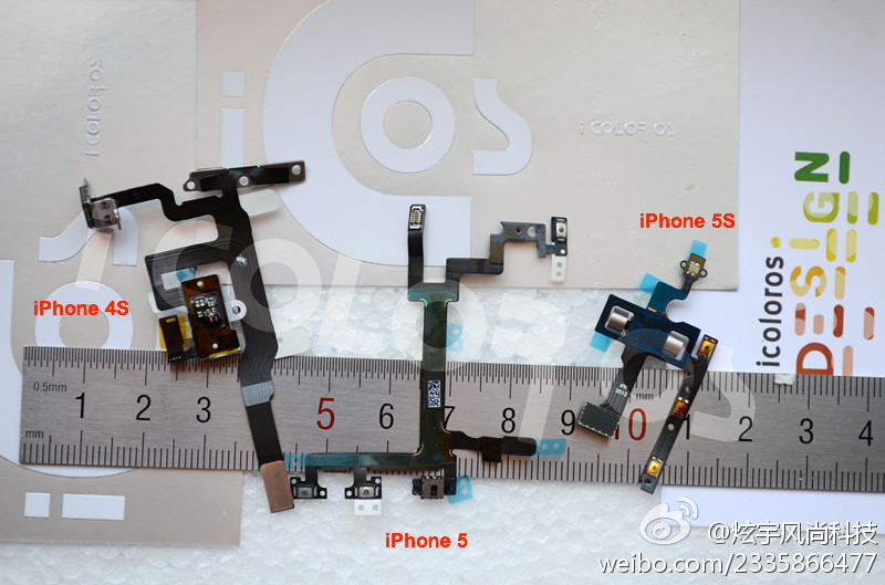 Fotografiile au ajuns pe Internet datorită site-ului iColorOS și vedem aici SIM tray-uri, butoane On/OFF, butoane de volum și butonul de mut. Observam si alte mecanisme in aceste imagini, care sunt comparate cu cele de pe iPhone 5. Ar putea fi vorba de diferite circuite asociate camerei sau zone din placa de baza. înainte să ne entuziasmăm prea tare, e posibil ca aceste mici componente să fi fost create în China, în vederea producției de clone de iPhone 5S. Nu ar fi prima oară când clona apare înainte de sosirea telefonului, mai ales că se poate observa o a treia culoare care nu este caracteristică celor de la Apple, auriu!