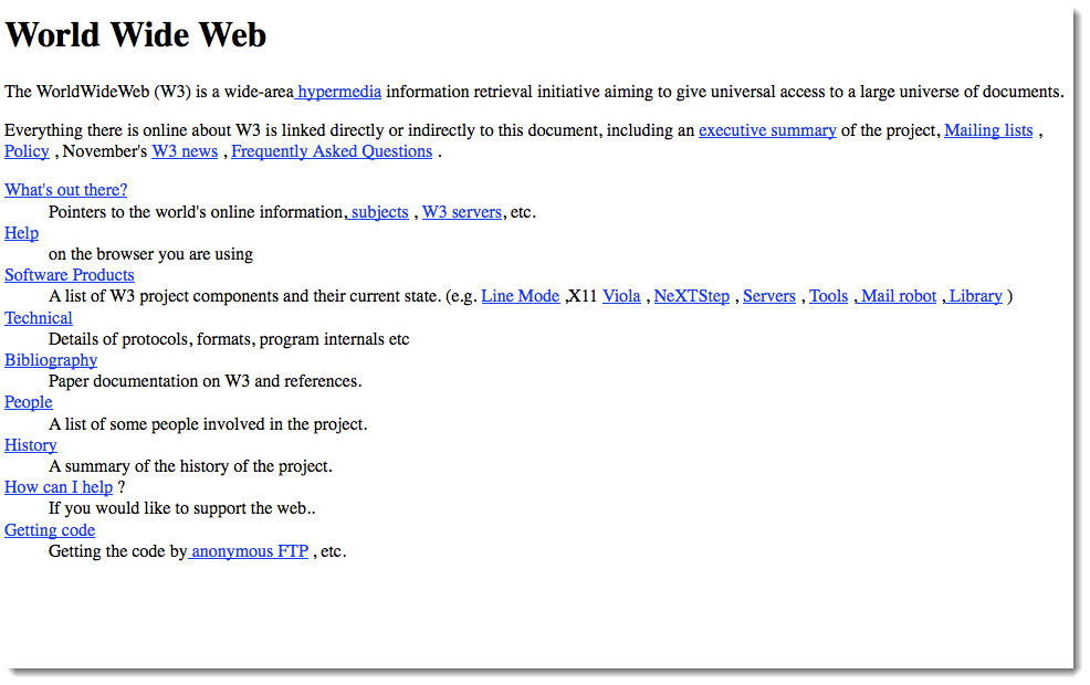 Revenind la primul site, Berners-Lee a profitat de lansare pentru a dezvălui viziunea sa asupra viitorului, cu o reţea uriaşă folosită pentru comunicarea între persoane şi miliarde de pagini accesibile de pe orice PC. La acea vreme el afirmă că "Proiectul WWW" combina ideea de hypertext cu obţinere a informaţiei de pe web pentru a crea un sistem global de informaţii.